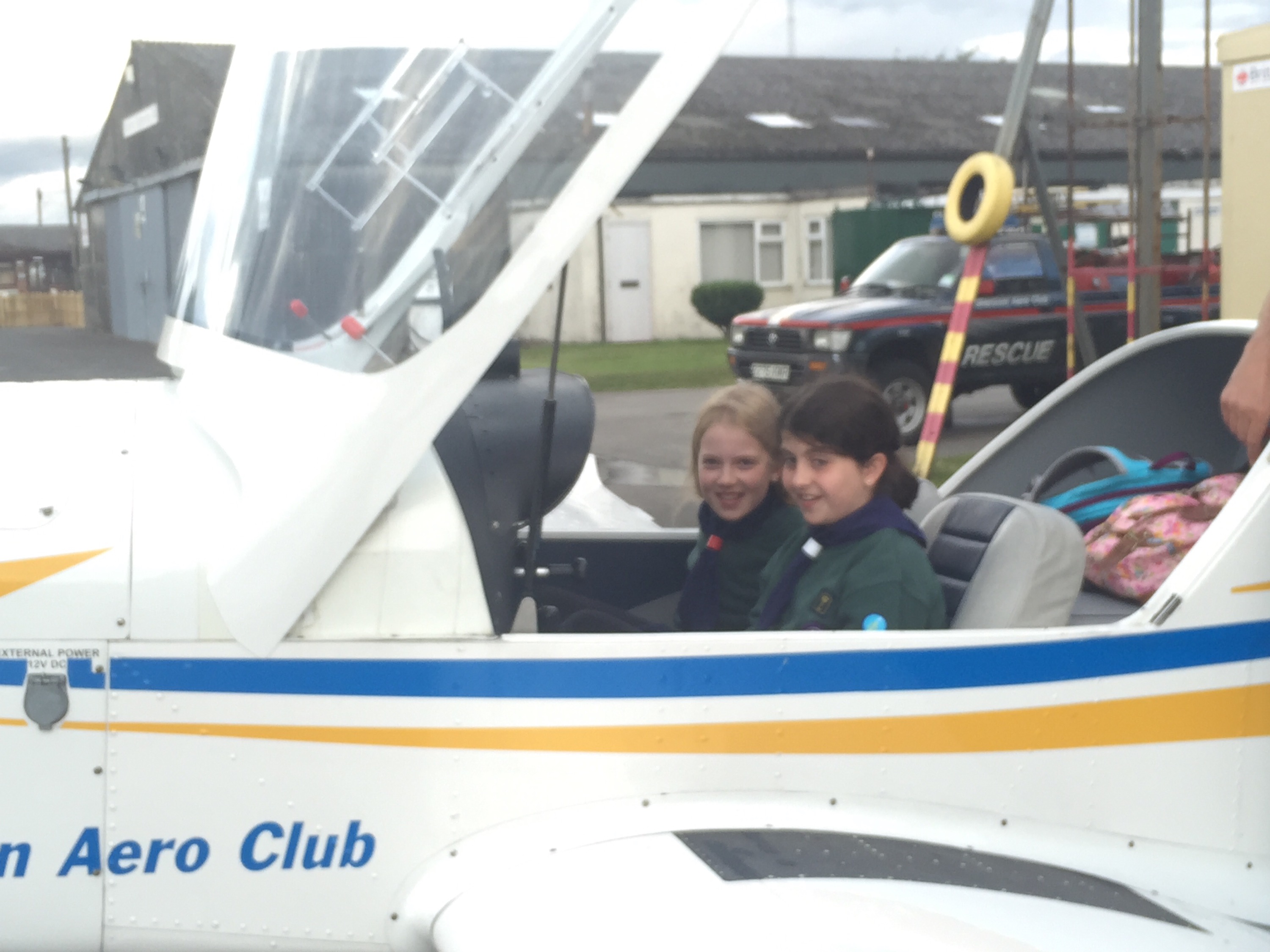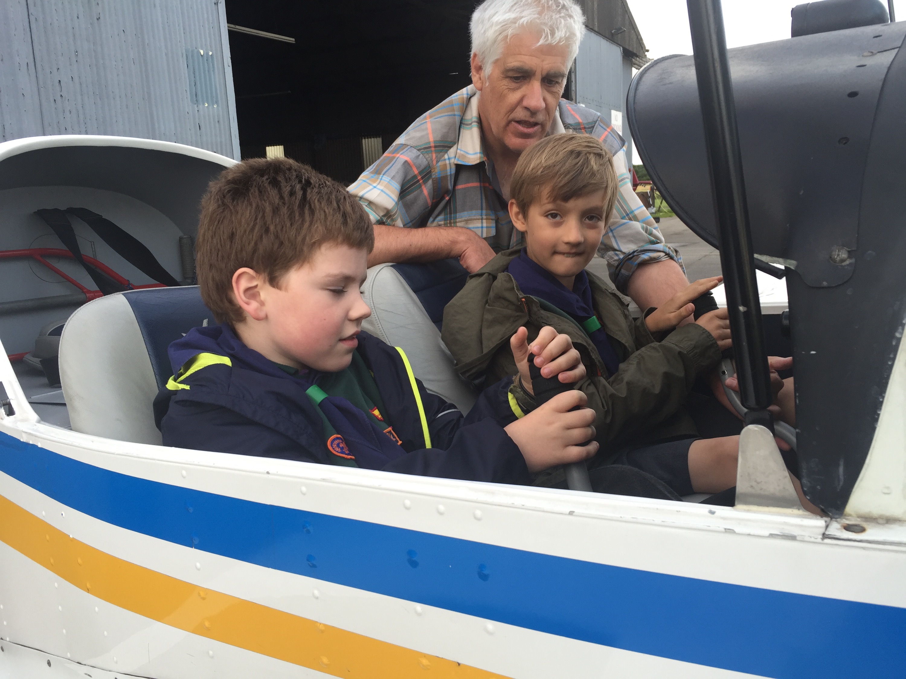 We then got the chance to sit 2 at a time, in the plane outside, playing with the joystick watching the flaps going up and down, and what all the switches and knobs do.